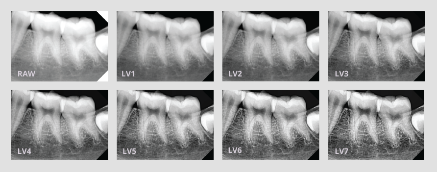 Cuenta con 7 nuevos filtros de contraste para encontrar la imagen perfecta. Los filtros de más contrastes se pueden utilizar para periodoncia, mientras que los filtros con menor contraste puede utilizarlos para la detención y odontología restauradora.
