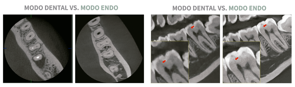Con su modo de volumen de 4 x 4 cm y un tamaño de vóxel de 49.5 micras, modo Endo optimiza el tratamiento de regiones de interés. Es ideal para uso endodóntico porque el dentista puede lograr una imagen extraordinaria en un tamaño de vóxel de alta resolución.