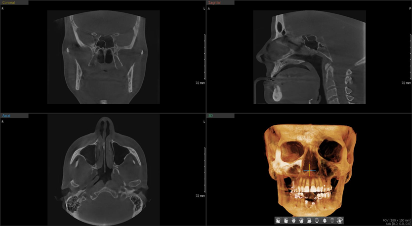 La selección de FOV se adapta a tus necesidades de diagnóstico: 16×15 (opcional), 16×9, 12×9, 8×9, 8×5, 5×5 y 4×4. Estas opciones abarcan toda la región del arco, seno y ATM (izquierda /derecha) y se adapta a la mayoría de los casos de cirugía y cirugía de implantes múltiples.